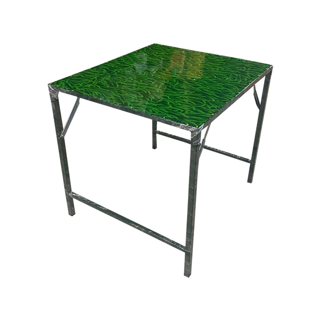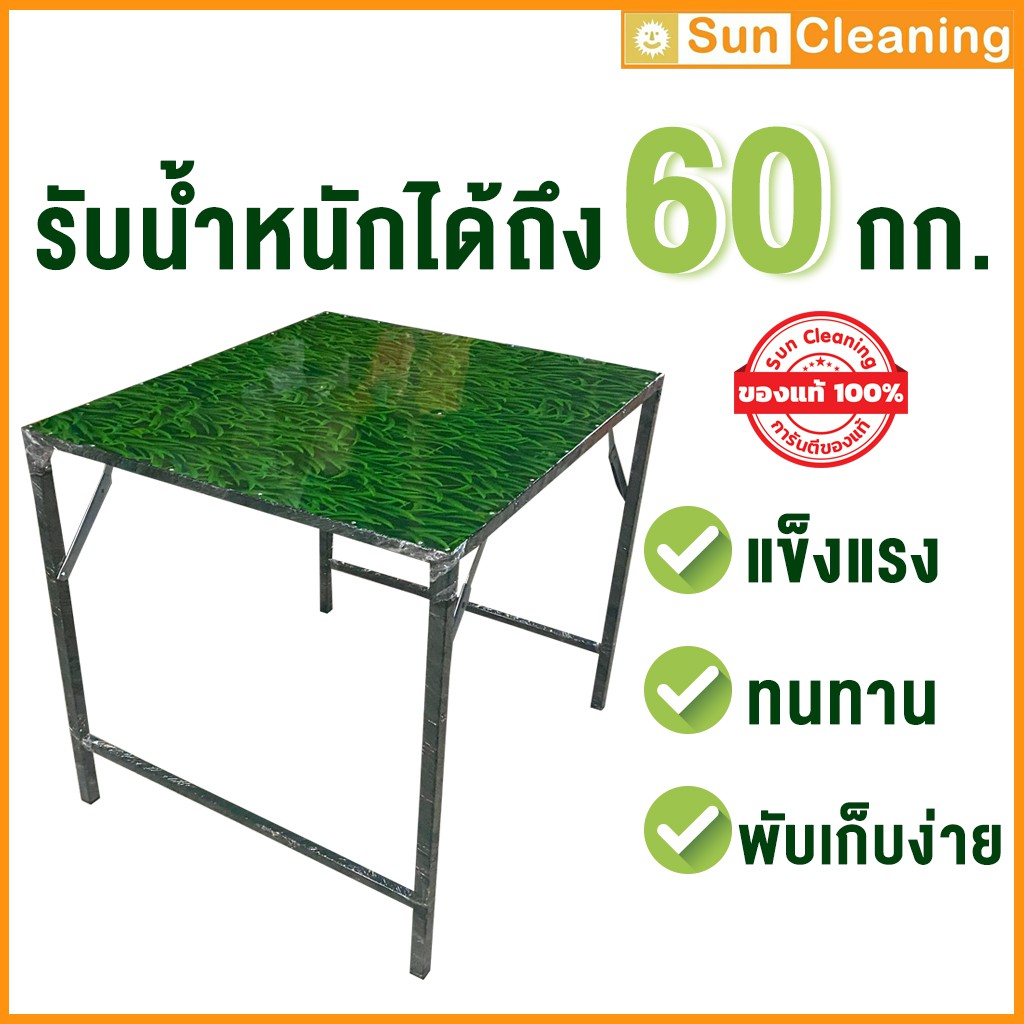 Sun Brand โต๊ะเหล็กพับแผ่นเมทัลชีท สีเขียว(ลายหญ้า) รุ่นจิ๋วแจ๋วขาสูง ขนาดกลาง 75x85x75.5 ซม.