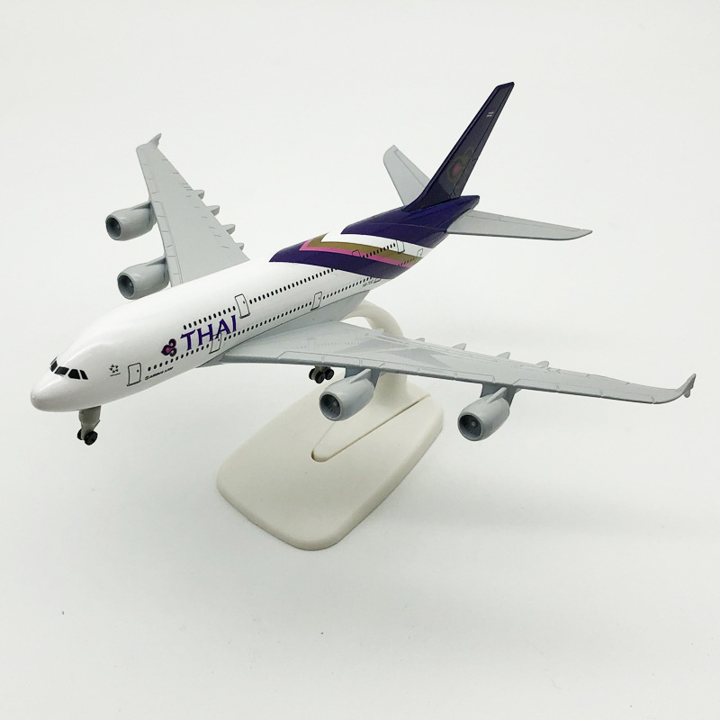 [20CM] โมเดลเครื่องบิน การบินไทย Airbus A380 วัสดุทำจากเหล็ก มีล้อ พร้อมฐานพลาสติก สำหรับตั้งโชว์
