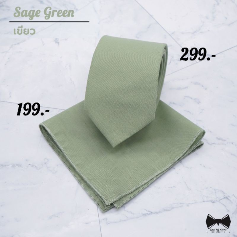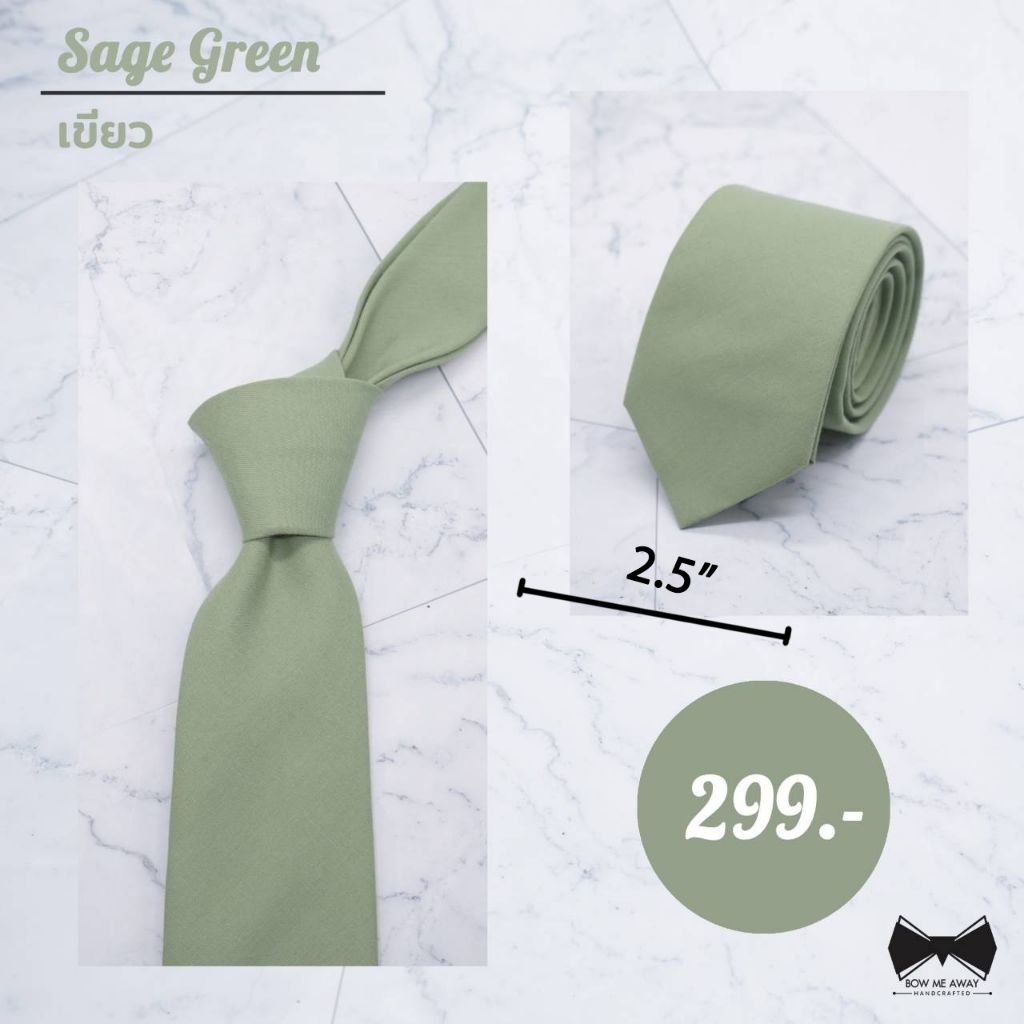 ❗️SALE❗️เนคไทเขียวเซจSage Green ผ้าคอตต้อน
