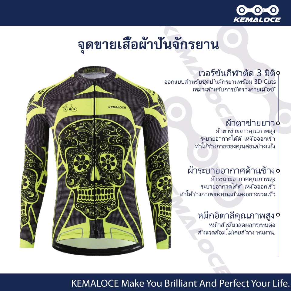 KEMALOCE สีเหลืองชุดปั่นจักรยานผู้ชายจักรยานเสื้อจักรยานแขนยาว ระบายอากาศแขนเต็มเสื้อยืดจักรยาน แห้งเร็วเสื้อปั่นจักรยาน ชุดจักรยาน