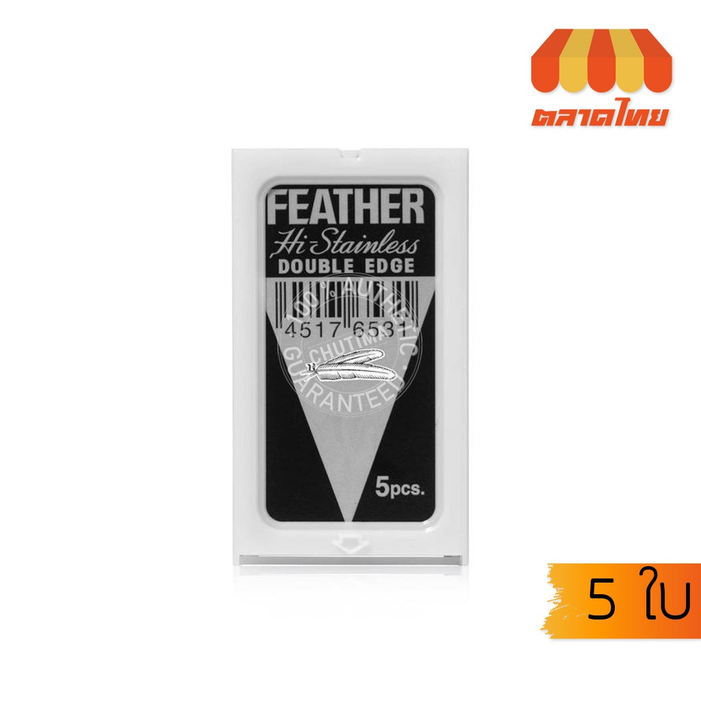 (ขายส่ง ฿32) ใบมีดโกนหนวด ตราขนนก FEATHER HI-STAINLESS BLADES (5 ใบ)