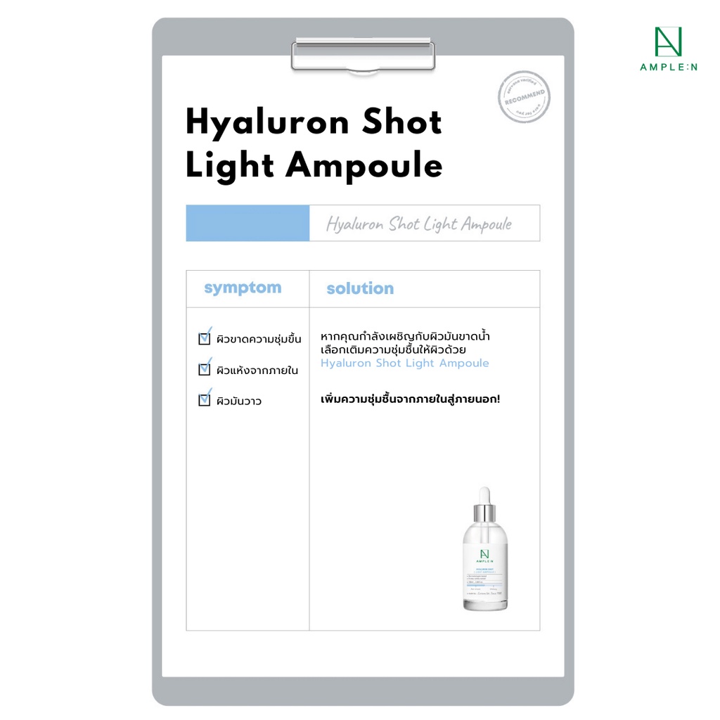 AMPLE:N Hyaluron Shot Light Ampoule 30ml / 100 ml. เซรั่มไฮยา เติมความชุ่มชื้น