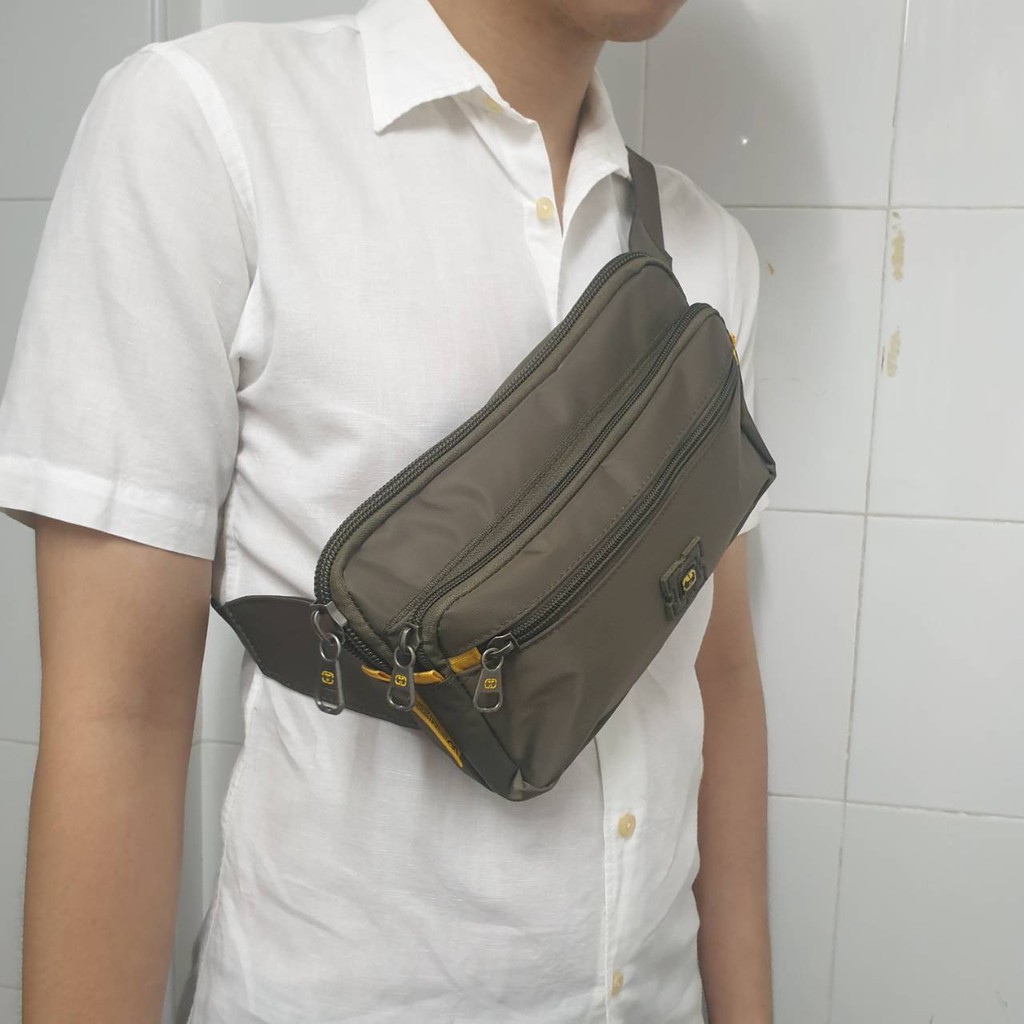 TOUCH กระเป๋าคาดเอว คาดอก ผ้านุ่มลื่นกันน้ำ สาย+ซิป แข็งแรง 4ช่องซิป + ช่องใสบัตร คนอ้วนเอว50นิ้ว ยาว 25ซม.(รุ่น5456)