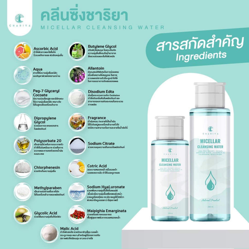 ชาริยา ไมเซล่าคลีนซิ่ง ดีท็อกซ์สิว ลดสิว ผิวมัน เป็นสิวง่าย คลีนผิวใส พร้อมบำรุง 6 in 1