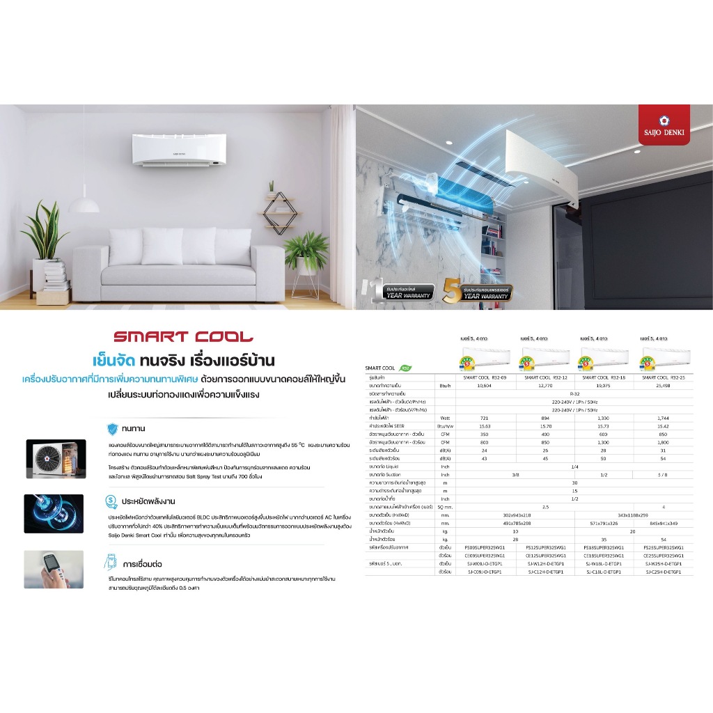 SAIJO DENKI แอร์ติดผนังรุ่น SMART COOL R32 NEW2025 ขนาด 9563-25498 BTU