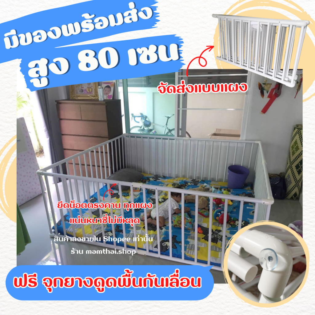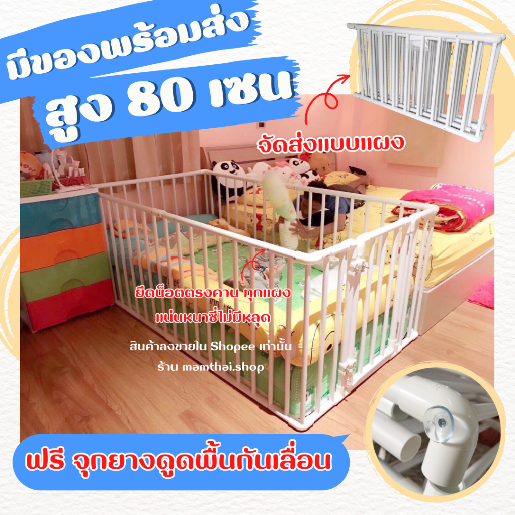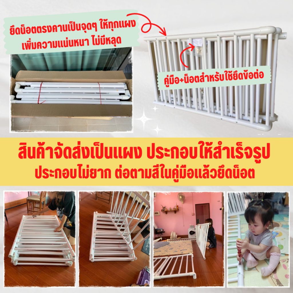 ✅ คานใหญ่ 8หุน จัดส่งแบบแผง 💌 คอกกั้นเด็ก สูง 80 เซน สีขาว (แถมฟรีจุกยางดูดพื้น) สินค้าพร้อมส่ง