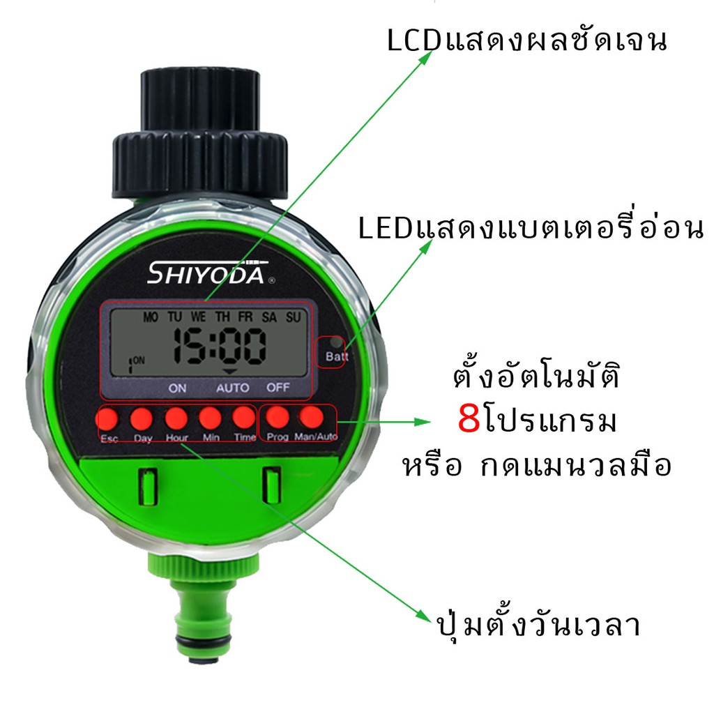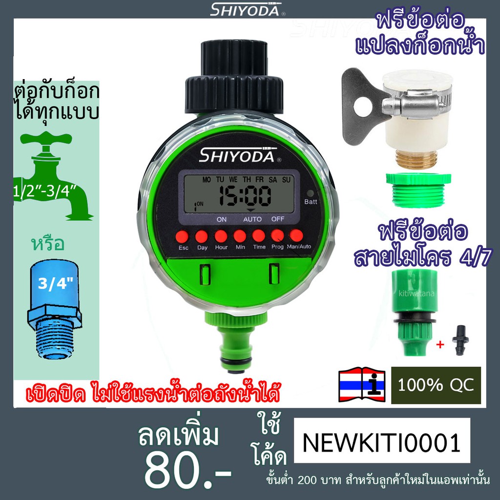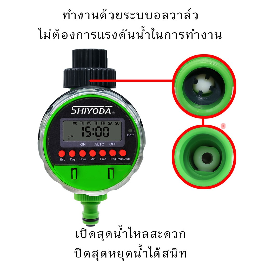 เครื่องตั้งเวลา รดน้ำ อัตโนมัติ ระบบบอลวาล์ว พร้อมข้อต่อแปลงเกลียวและข้อต่อสายไมโคร