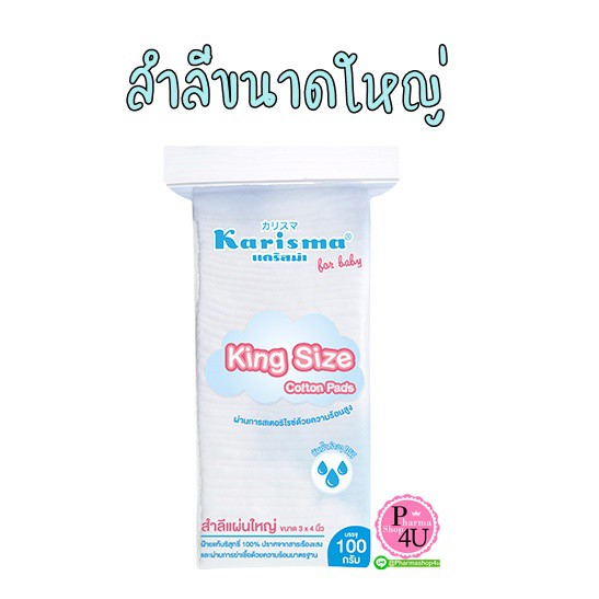 สำลี แผ่นใหญ่ karisma ขนาด king size 100 g 1 ห่อ สำลีขนาดพิเศษ 3x4 ใช้เช็ดทำความสะอาด ใบหน้า#7209