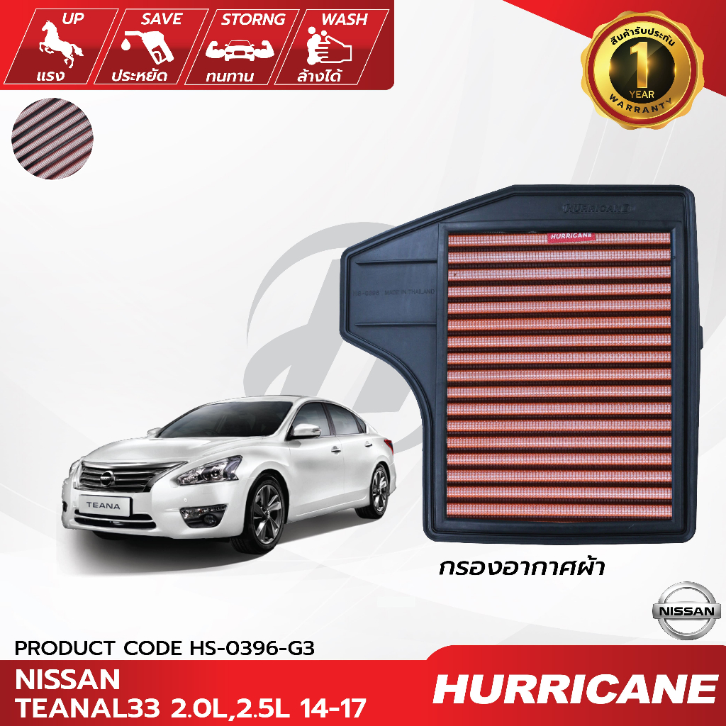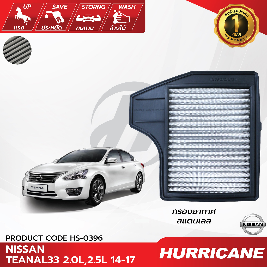 HURRICANE กรองอากาศรถยนต์ผ้าแดง & สแตนเลส Nissan Teana L33 HS-0396