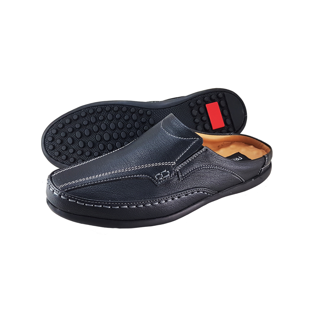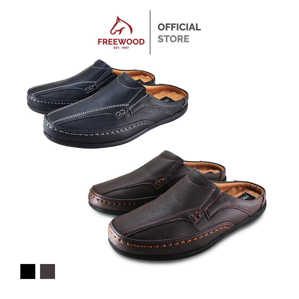FREEWOOD OPEN HEEL CASUAL SHOES รองเท้าลำลองผู้ชาย หนังแท้ แบบเปิดส้น รุ่น 79-6141 สีดำ / สีน้ำตาล ( BLACK / BROWN )