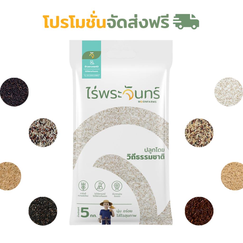ข้าวสุขภาพ 5Kg คัดพิเศษ ปลอดสาร ไม่ใช้สารกันมอด แบรนด์ไร่พระจันทร์ ( ข้าว ไรซ์เบอร์รี่ ข้าวกล้อง ข้าวสาร )