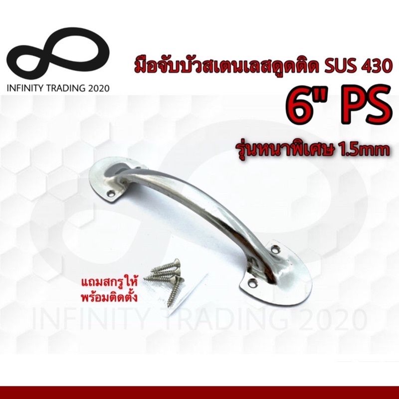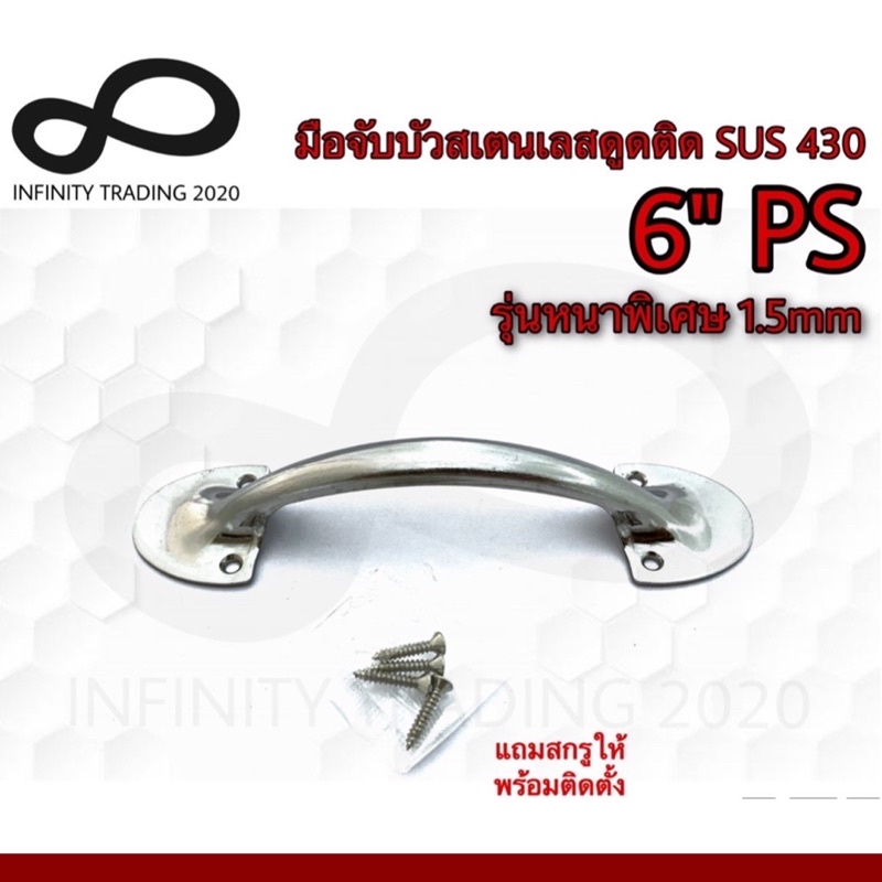 มือจับขาบัว มือจับประตู หน้าต่าง สเตนเลสดูดติด NO.5014-6” SS (SUS 430 JAPAN) Infinity Trading 2020