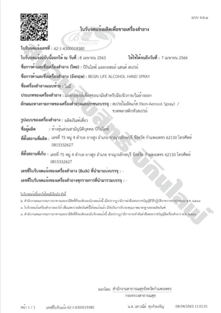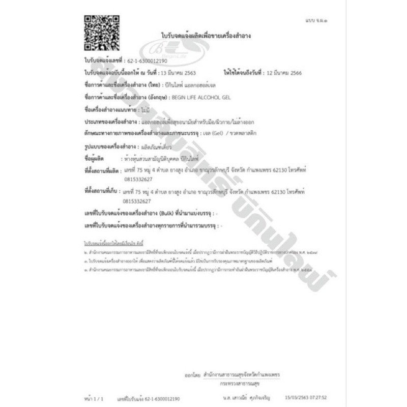 บีกินไลฟ์ แอลกอฮอล์เจล สเปรย์ล้างมือ 75% เกรด รพ. 1000ml.