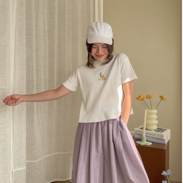 katji / พร้อมส่ง mini tee เสื้อยืดตัวครอปผ้าร่อง
