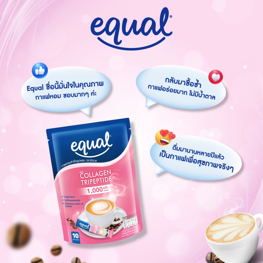 Equal collagen coffee อิควล กาแฟคอลลาเจน ขนาด 10 ซอง 70 แคลอรี