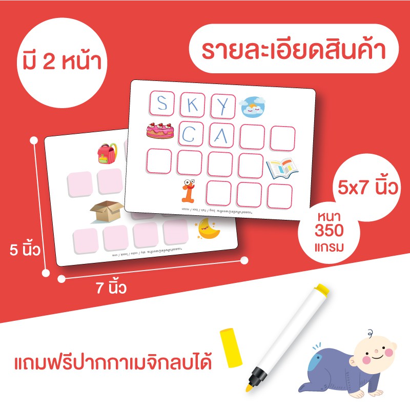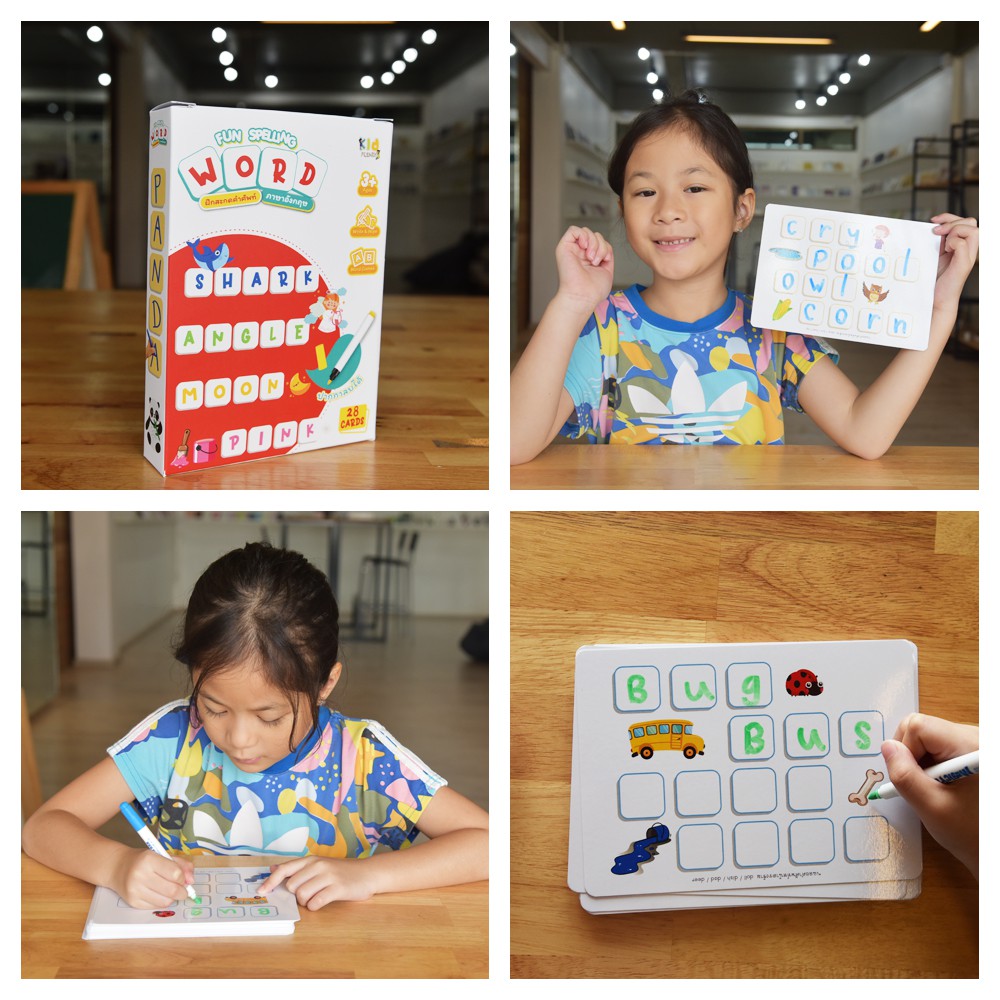 การ์ดฝึกสะกดคำ ภาษาอังกฤษ (กล่องแดง) Fun spelling word เขียนแล้วลบได้ Wipe&Clean KP