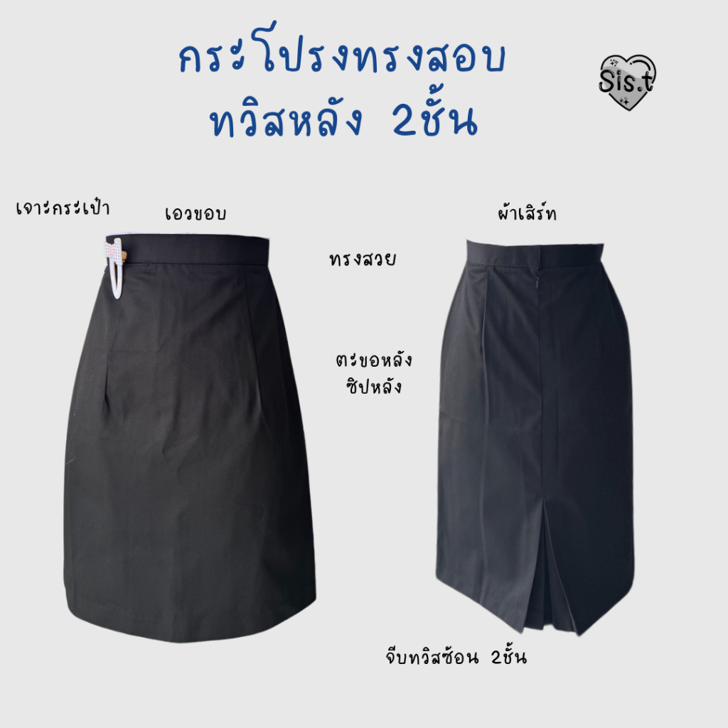 กระโปรงทรงสอบ // มีขอบ เจาะกระเป๋า กระโปรงปวส. // สีดำ 💟กระโปรงเทคนิค อาชีวะ