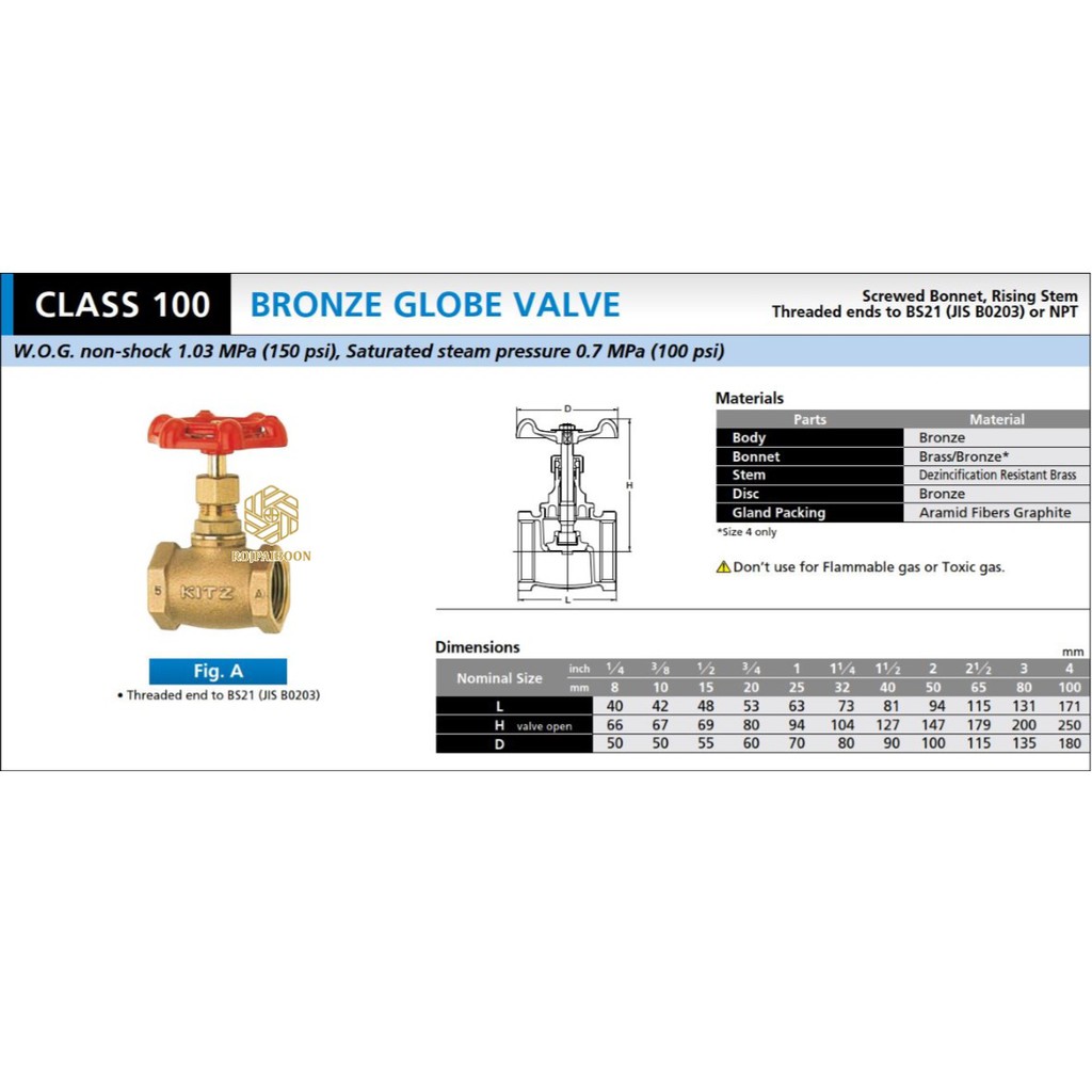 โกลบวาล์ว ทองเหลือง KITZ รุ่น A 1/4 - 1.1/4 นิ้ว