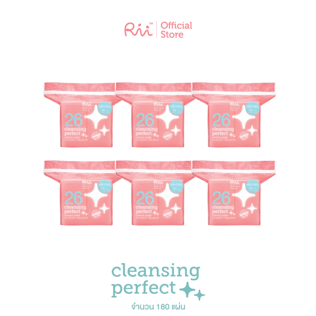 (แพ็คหก) Rii 26 Cleansing Perfect Cotton Pads 180 Pcs (Refill)