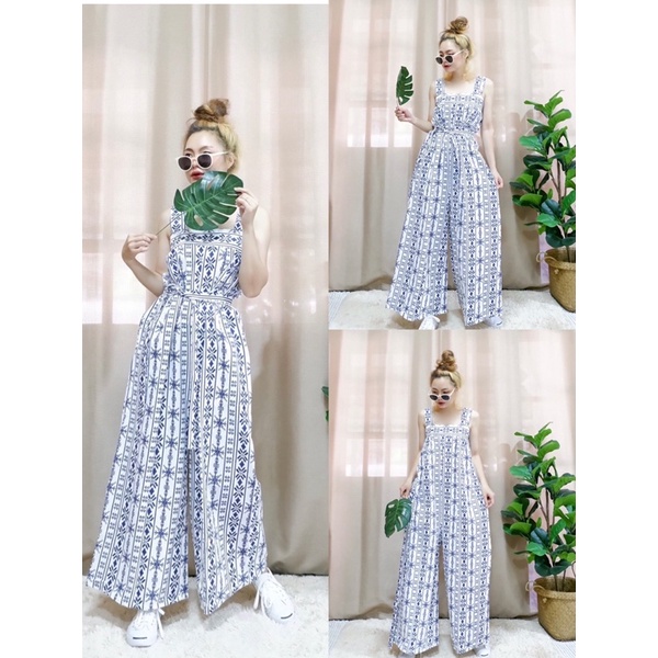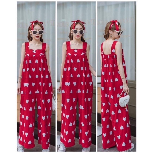 พร้อมส่ง (แถมสายรัด+ผ้าโพกผม) เอี๊ยมหมี จั๊มสูทหมี เอี๊ยมขายาว ผ้าฝ้ายพิมพ์ลาย