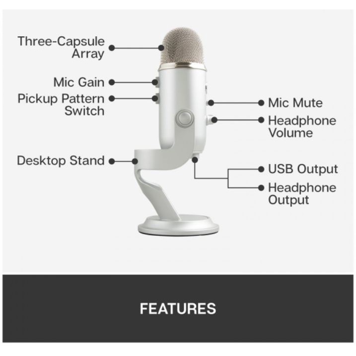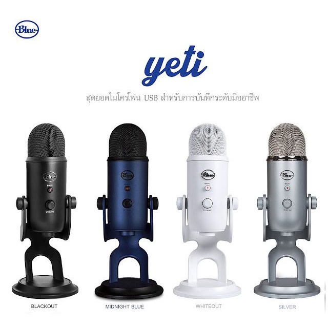 Blue Yeti USB Microphone ฟรี Pop Filter ไมค์โครโฟน คุณภาพสูงพร้อมส่ง ของแท้ รับประกัน 1 ปี.