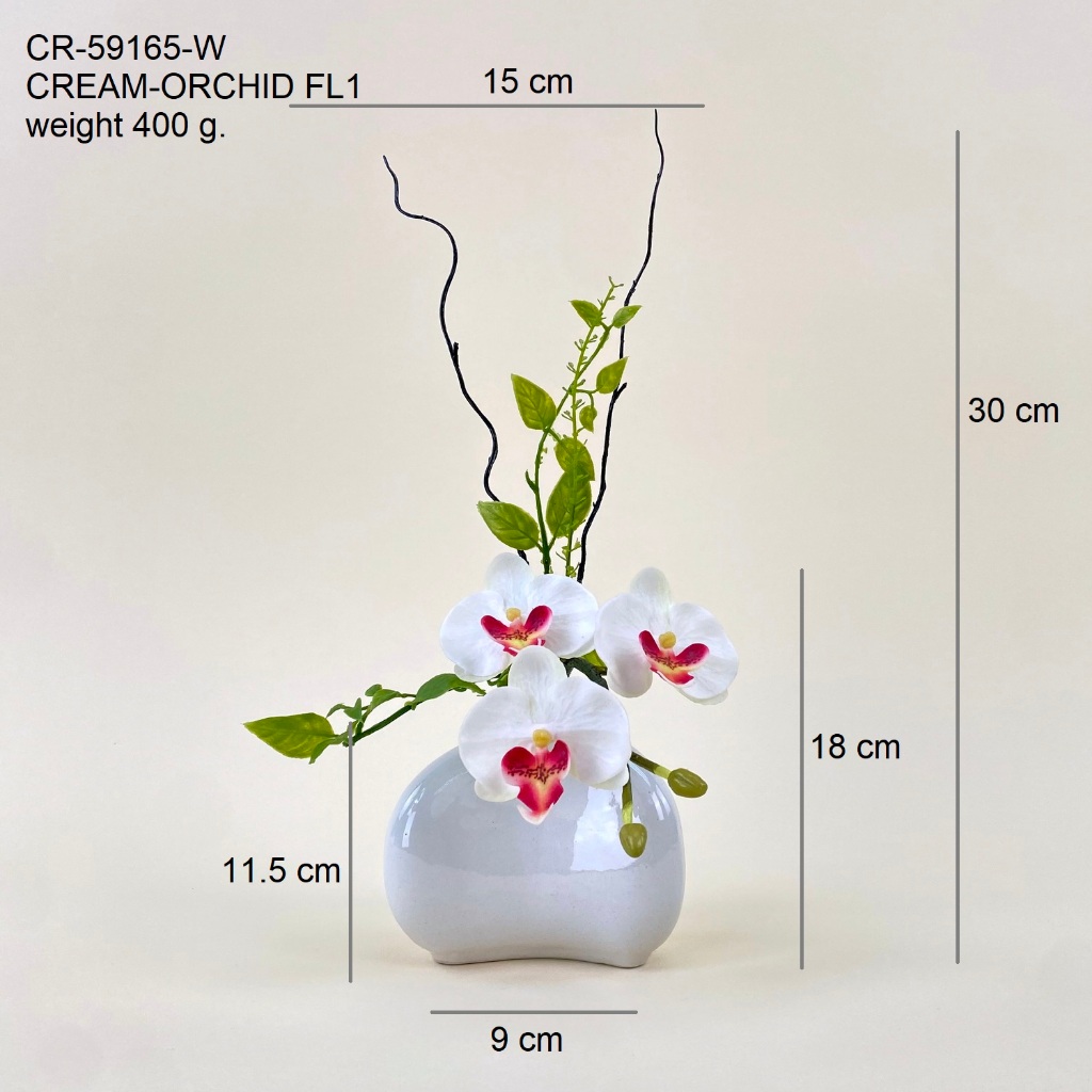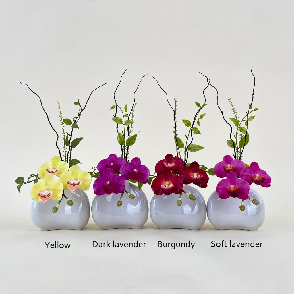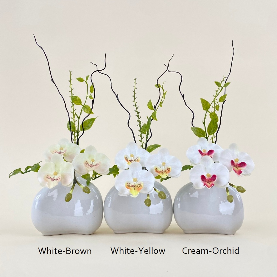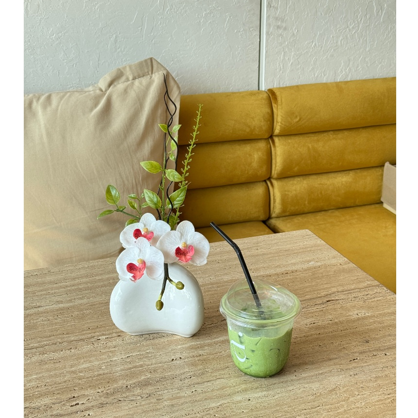 แจกันดอกไม้ปลอม ดอกกล้วยไม้ในแจกันเซรามิคทรงหัวใจ ดอกไม้ปลอมตกแต่งโต๊ะ