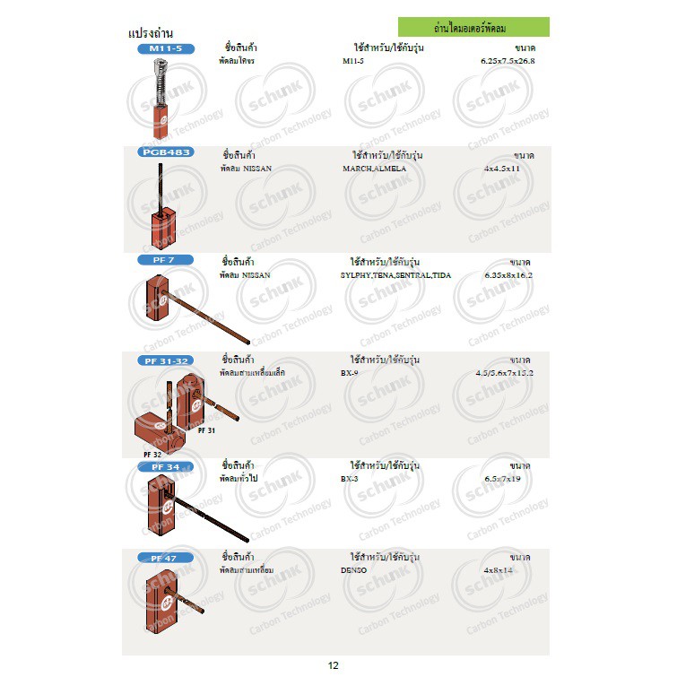 (ซื้อ5แถม1) ถ่านมอเตอร์พัดลม MITSUBISHI TRITON,CEDIA รหัส PFX195
