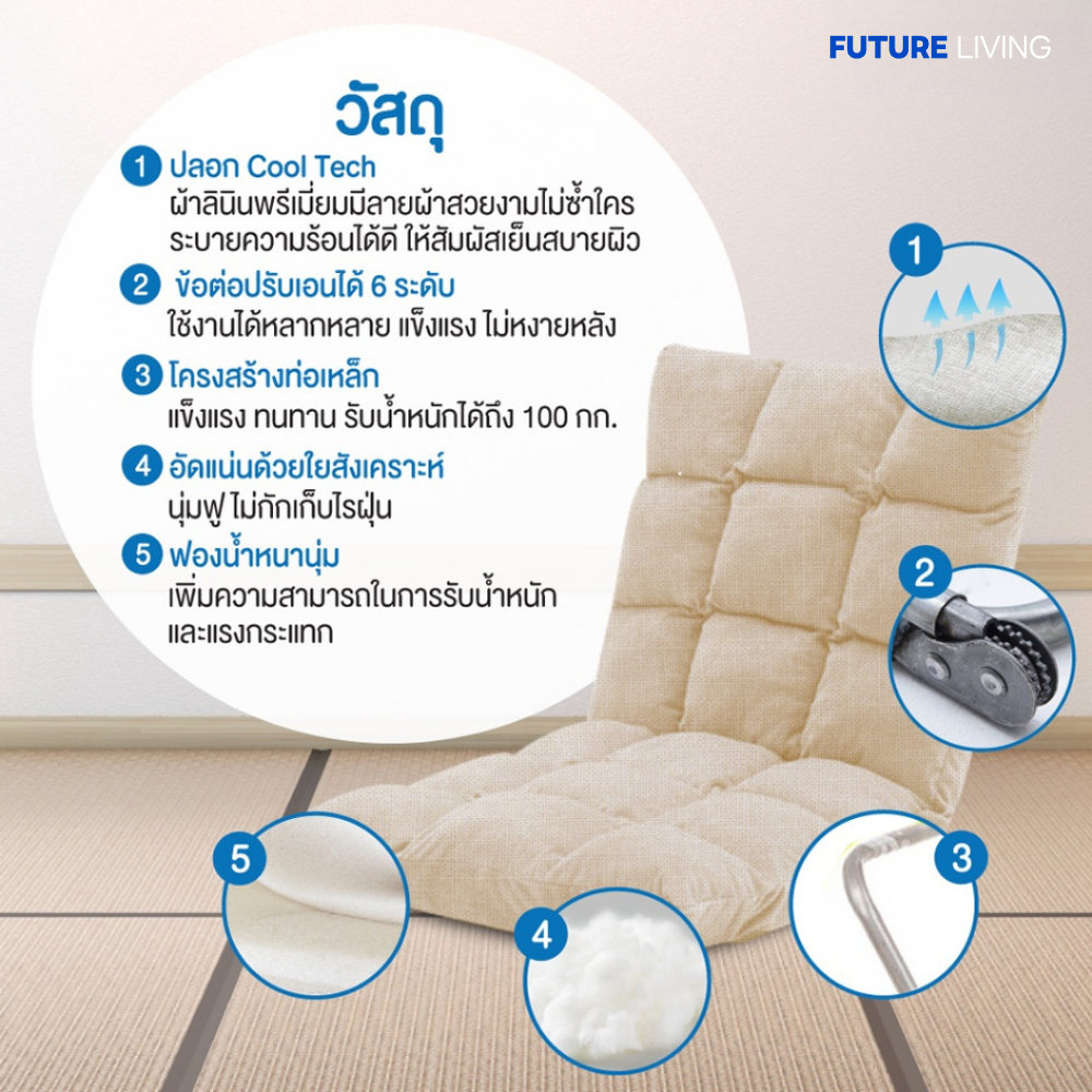 โซฟาญี่ปุ่นนั่งพื้น รุ่นทาทามิ เก้าอี้ปรับระดับ ปรับนอน พับได้ ผ้า Cool tech/ หนัง/ ผ้ากำมะหยี่