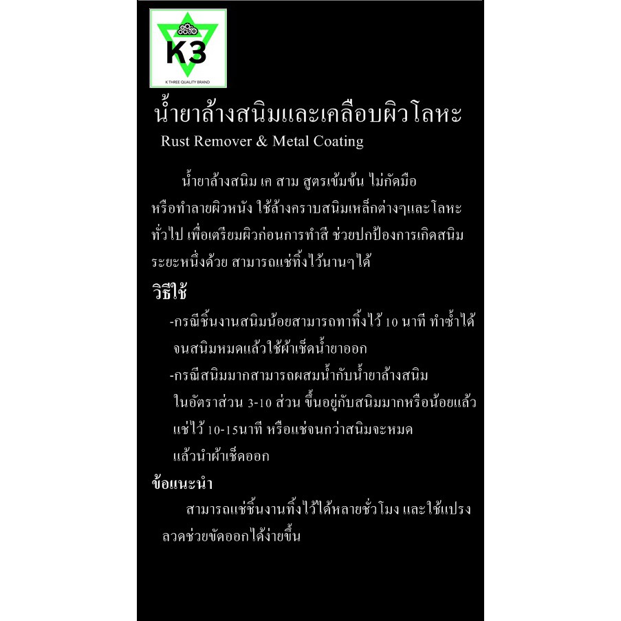 น้ำยาล้างสนิม น้ำยากำจัดสนิม ขัดสนิม ขจัดสนิม และ เคลือบกันสนิม K3 (เคสาม) ขนาด 500 ml.
