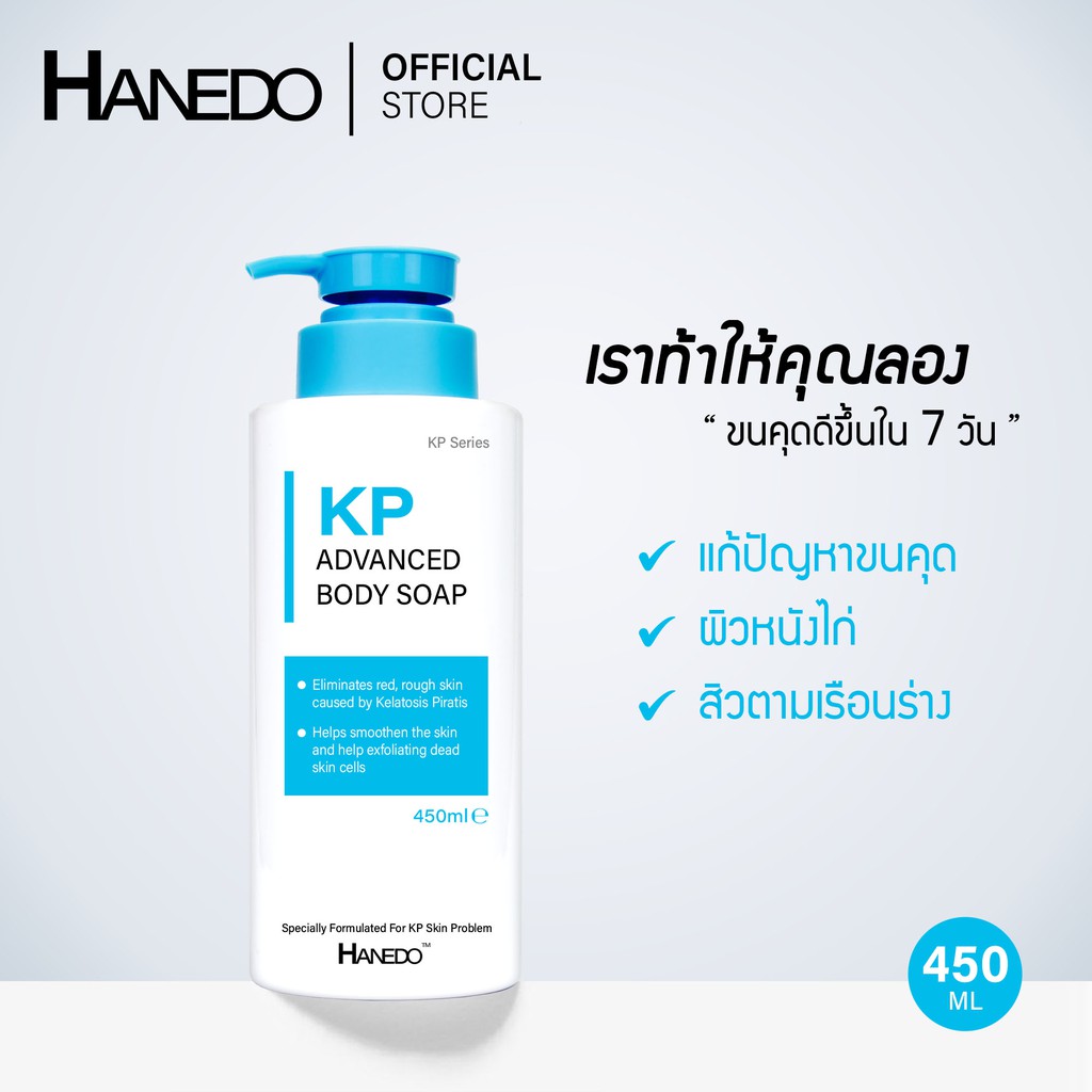 Hanedo สบู่เหลวรักษาขนคุด ผิวหนังไก่ สิวที่หลัง KP Advanced Body Soap 450ml
