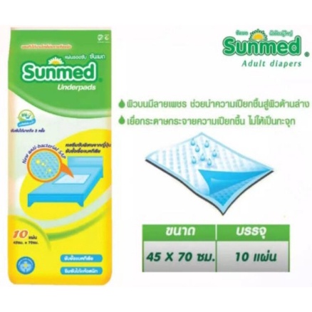 ยกลัง 18 ห่อ ซันเมด sunmed แผ่นรองซับ #L 45x70ซ.ม.ห่อละ10ชิ้น