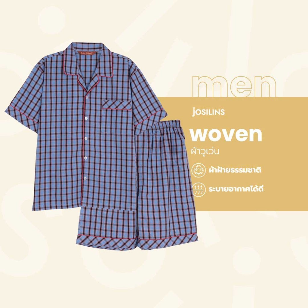Josilins ชุดนอน ชุดอยู่บ้าน เสื้อแขนสั้น กางเกงขาสั้น ป้าย Anker Stubert ผ้าวูเว่น ใส่ได้ชายหญิง คละลาย