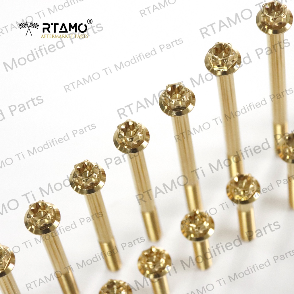 RTAMO ไทเทเนียม Gr5 M6x10-130L 12D T30 Big Gear Head Black สีน้ําเงินไหม้ Gold Link