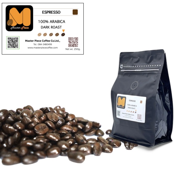 เมล็ดกาแฟคั่ว สูตรEspresso (250g) ตรา มาสเตอร์พีซคอฟฟี่ masterpiececoffee อราบิก้าแท้100% คั่วระดับเช้ม