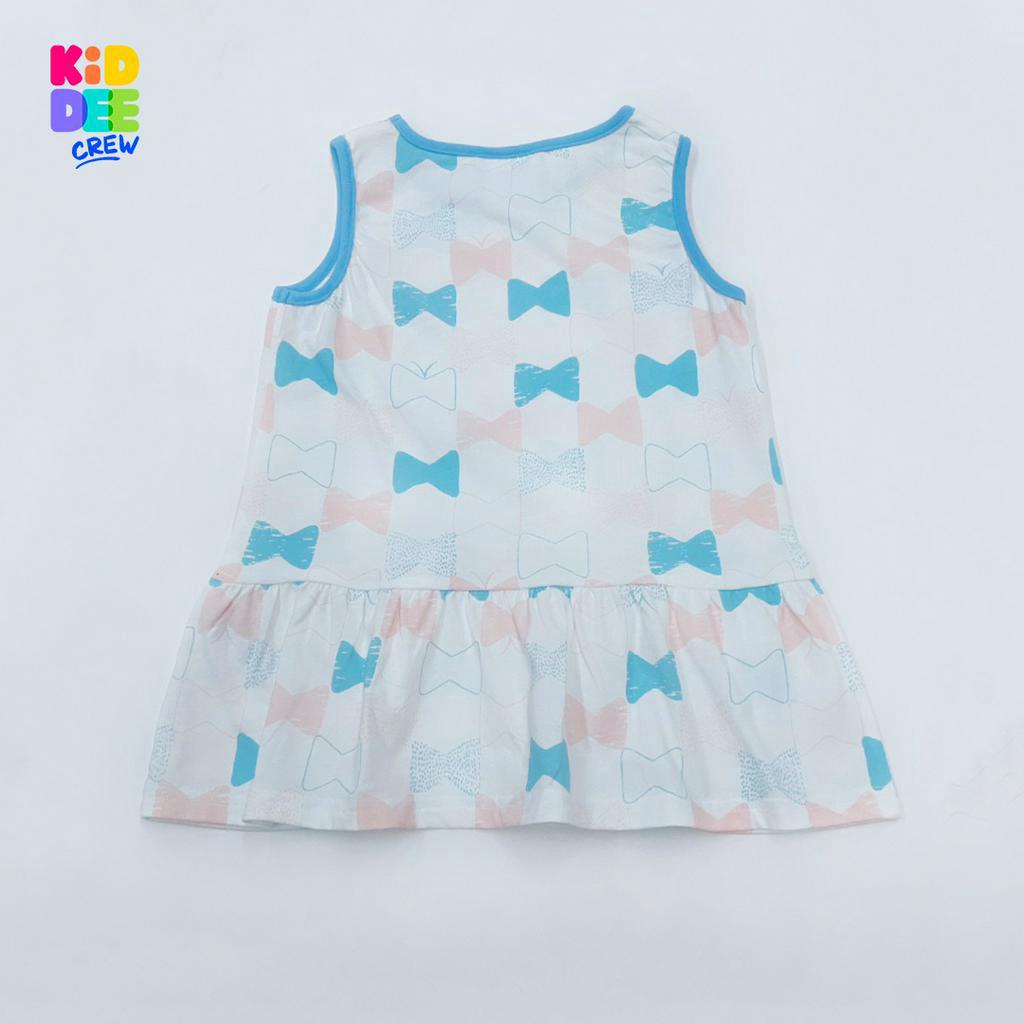 KiddeeCrew เสื้อกล้ามเด็ก สีขาวโบว์ฟ้า เหมาะสำหรับอายุ 1-8 ปี