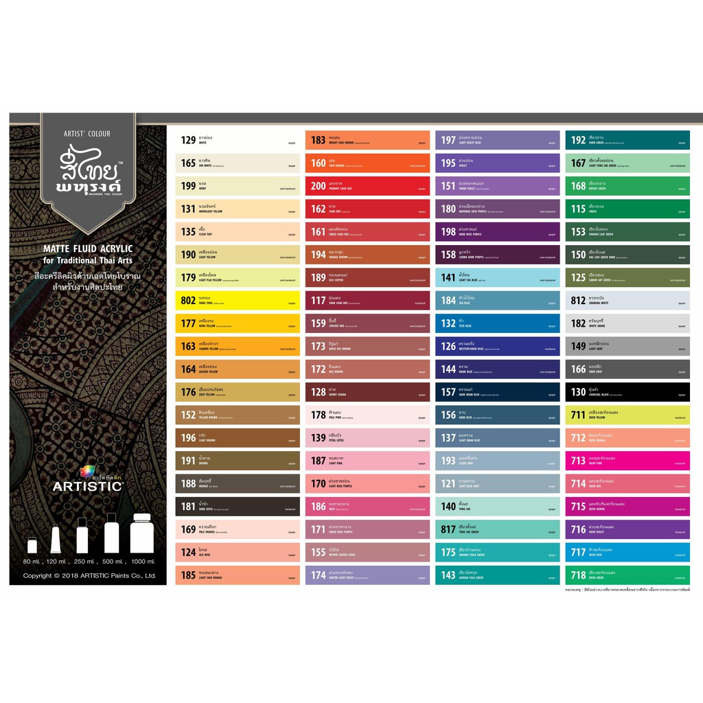 สีอะครีลิค ARTISTIC สีไทยพหุรงค์ เฉดสีหงสบาท No.187 ผิวด้าน เฉดสีจากไทยโทน : ThaiTone Acrylic Colour Shaed