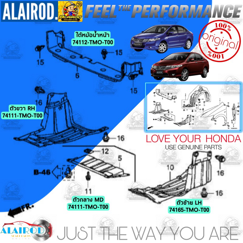 พลาสติกใต้เครื่อง HONDA CITY (GM2) ซิตี้ ปี 2009-2013 ตัวกลาง,ตัวซ้าย,ตัวขวา,ใต้คานหม้อน้ำ แท้