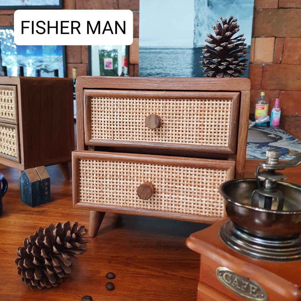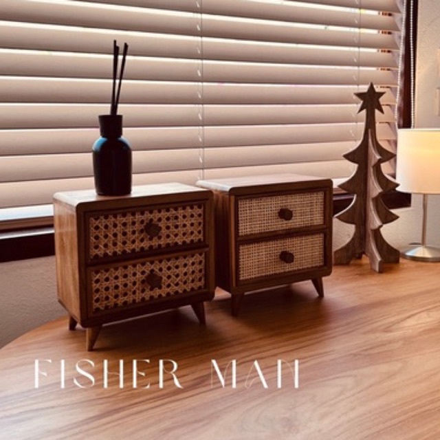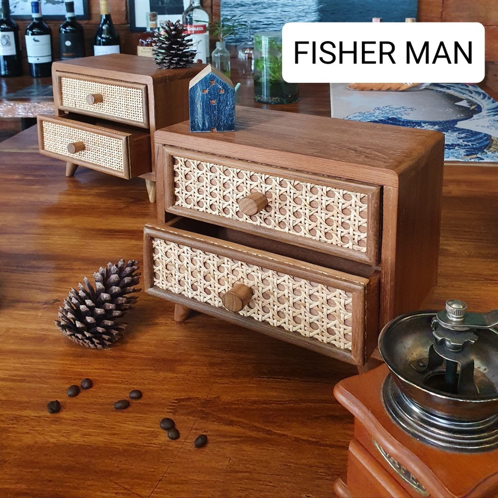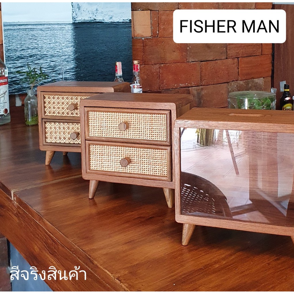 ตู้ไม้สักมินิมอล แบบหวายสานสองลิ้นชัก ประดับตกแต่งบ้าน (Thai Cabinet old teakwood)