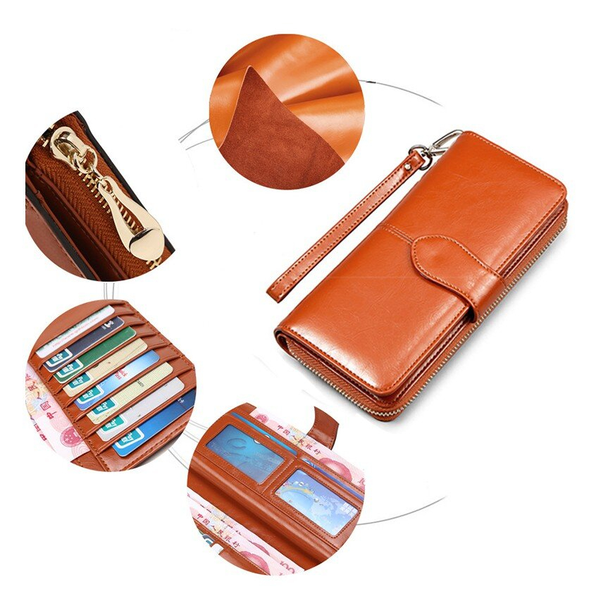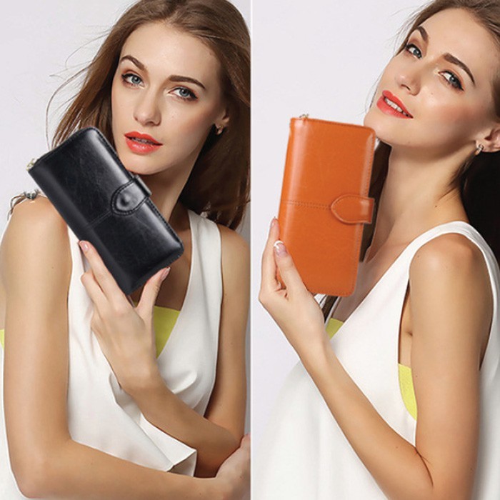 แฟชั่นผู้หญิงกระเป๋าสตางค์หนัง PU แบบพกพามัลติฟังก์ชั่กระเป๋าสตางค์ยาวน้ํามันขี้ผึ้งหนังที่สมบูรณ์แบบรู้สึกคลัทช์🔥R1147