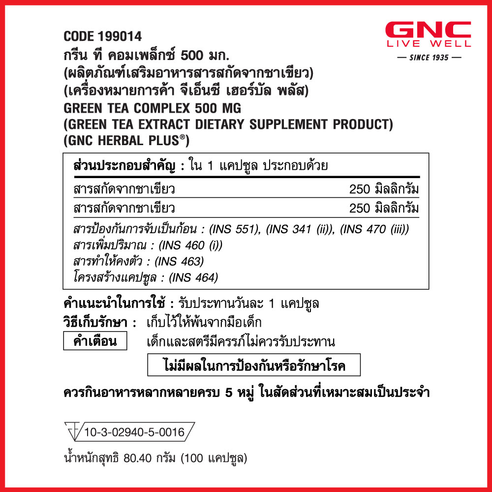 GNC Green Tea Complex 500mg 100 Capsules "ชาเขียวสกัดXเพื่อการเผาผลาญที่ดีขึ้น"