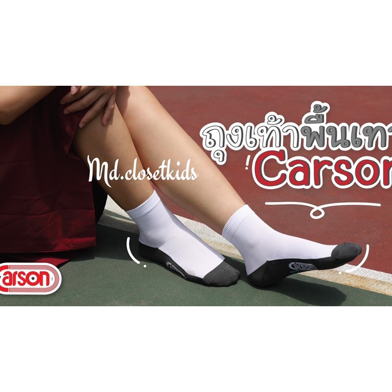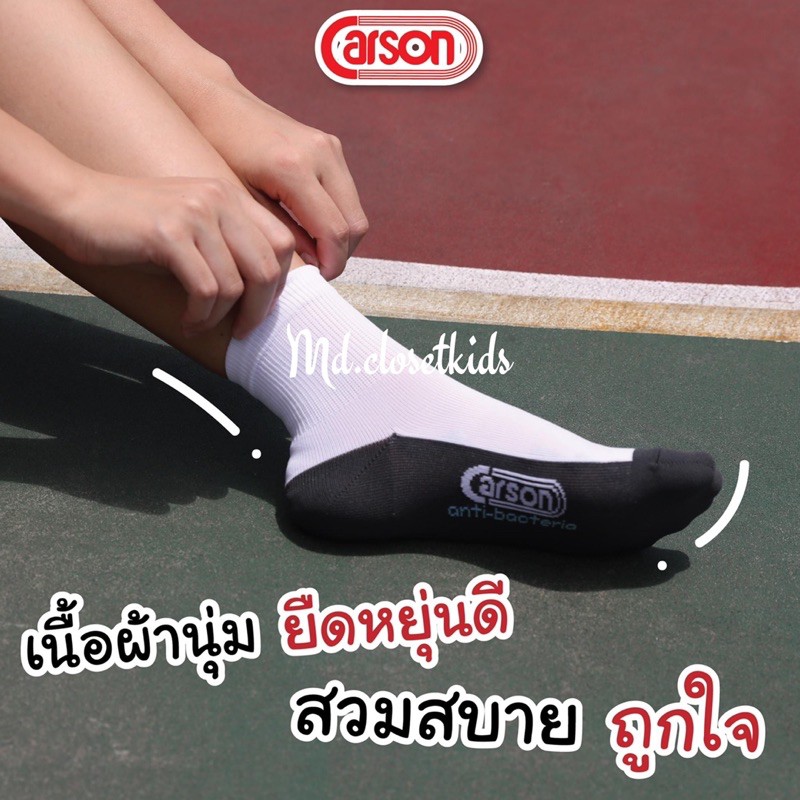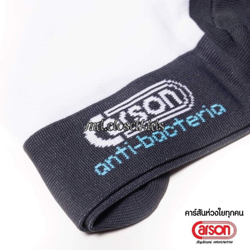 (ขอบิลเบิกรร.ทักแชท)(ขายส่ง)CarsonAntibac/2G-(ไนลอน)ถุงเท้ายี่ห้อcarsonรุ่นแอนตี้แบคทีเรียลดกลิ่นสีขาวพื้นเทาไม่มีกันลื่