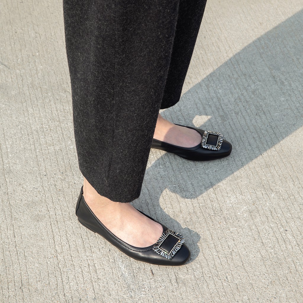 Sweet Palettes รองเท้าหนังแกะ Diaz Lucent Charcoal สีดำ