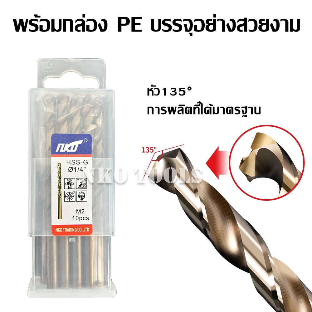 NKO ดอกสว่าน ดอกเจาะเหล็ก ดอกสว่านเจาะสแตนเลส HSS ดอกสว่านเจาะพลาสติก เจาะอลูมิเนียม เจาะทองแดง