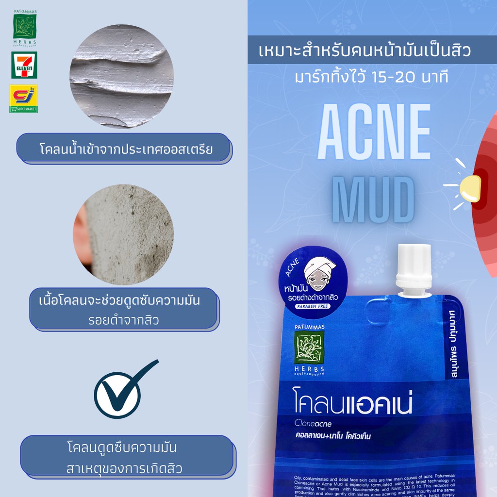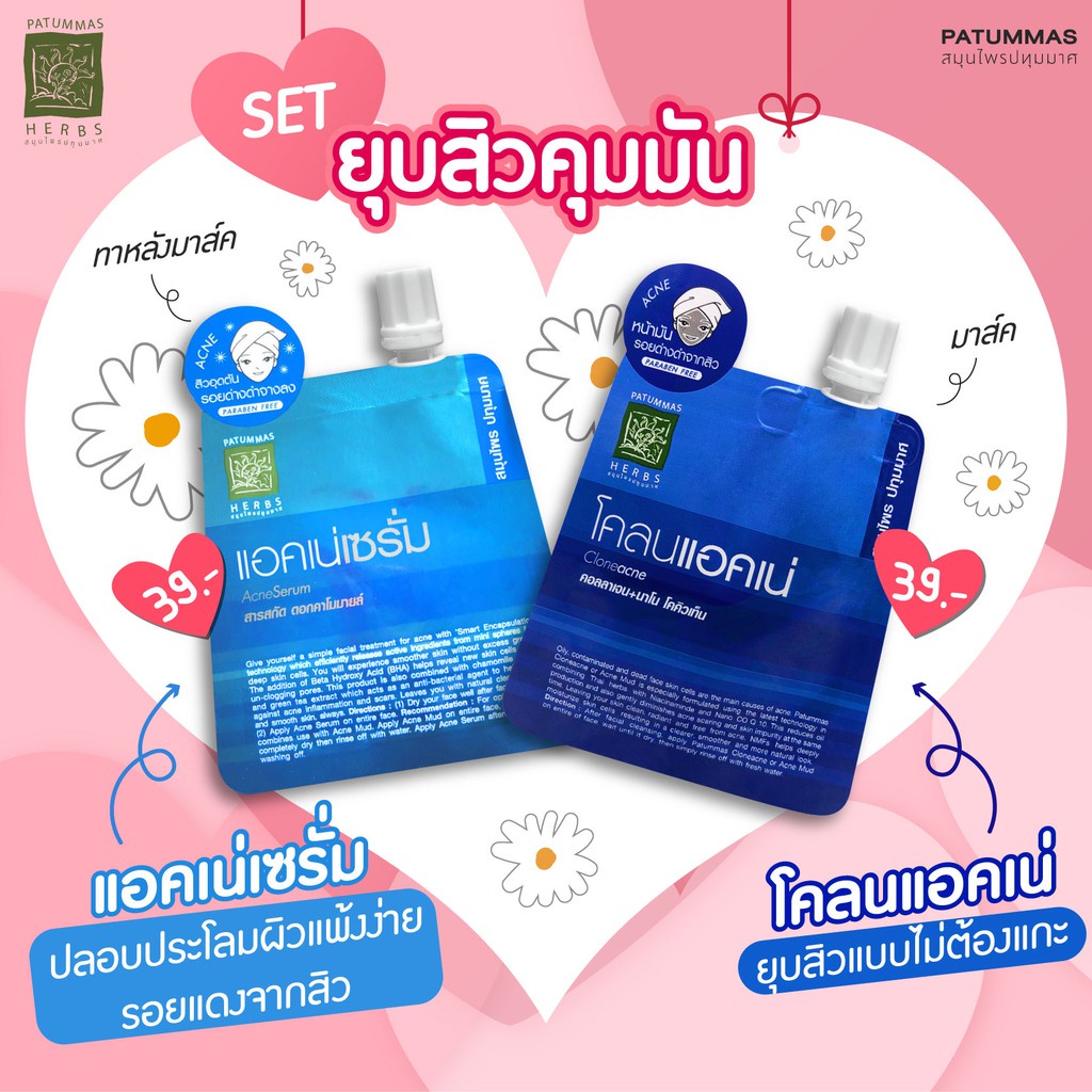 ปทุมมาศ สุภาภรณ์ โคลนแอคเน่ โคลนไวท์เทนนิ่ง ครีมขัดหน้า แอคเน่ เซรั่ม Patummas Supaporn Acne / Scrub / Serum