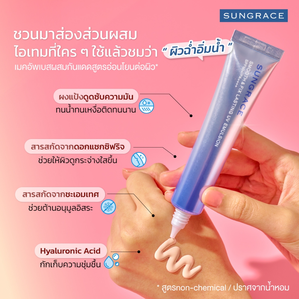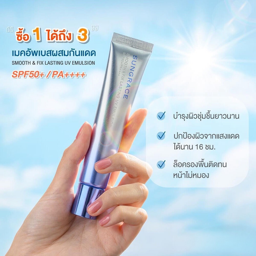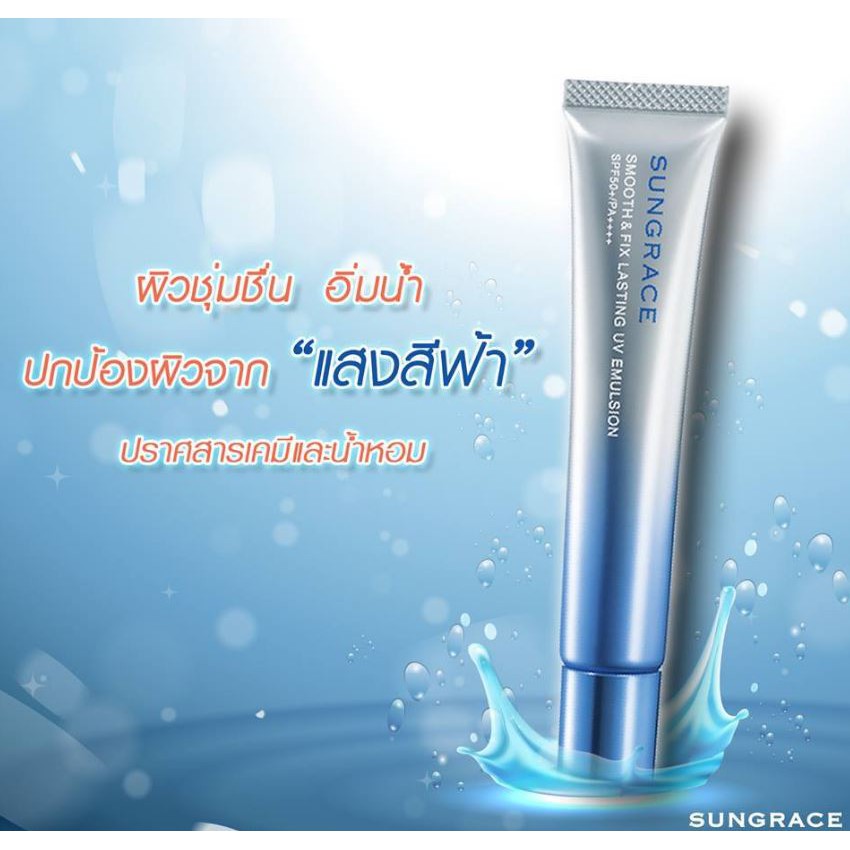 ❤️ไม่แท้คืนเงิน❤️ Sungrace Smooth & Fix Lasting UV Emulsion SPF50+ PA++++” เมคอัพเบสผสมสารกันแดด