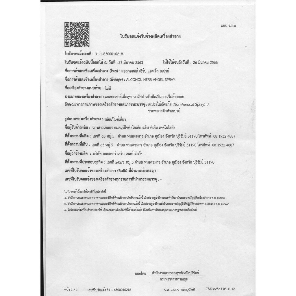 แอลกอฮอลล์น้ำ 75% 5 ลิตร มีกลิ่นให้เลือก (Herb Angle Spray 75%)