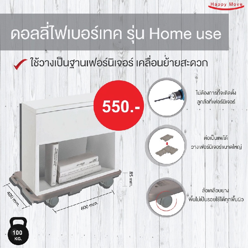 รถเข็นของ4ล้อ ฐานวางของติดล้อมีลูกปืน รถเข็นต่อขยายใหญ่ได้ รับน้ำหนัก 60-150 กก. Happy Move