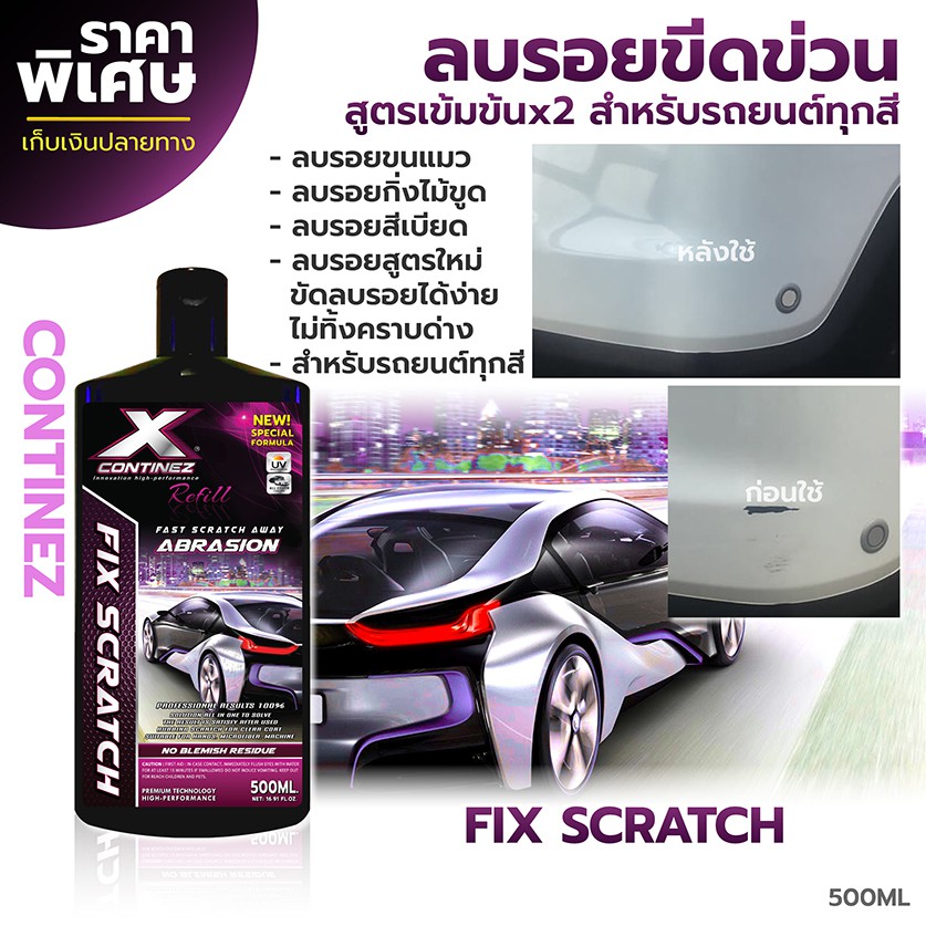[ลบรอยเร่งด่วน] Continez น้ำยาลบรอยขีดข่วน เห็นผลที่สุด ลบรอยลึก รถยนต์ มอเตอร์ไซค์ ใช้ได้กับรถทุกสี 500ml