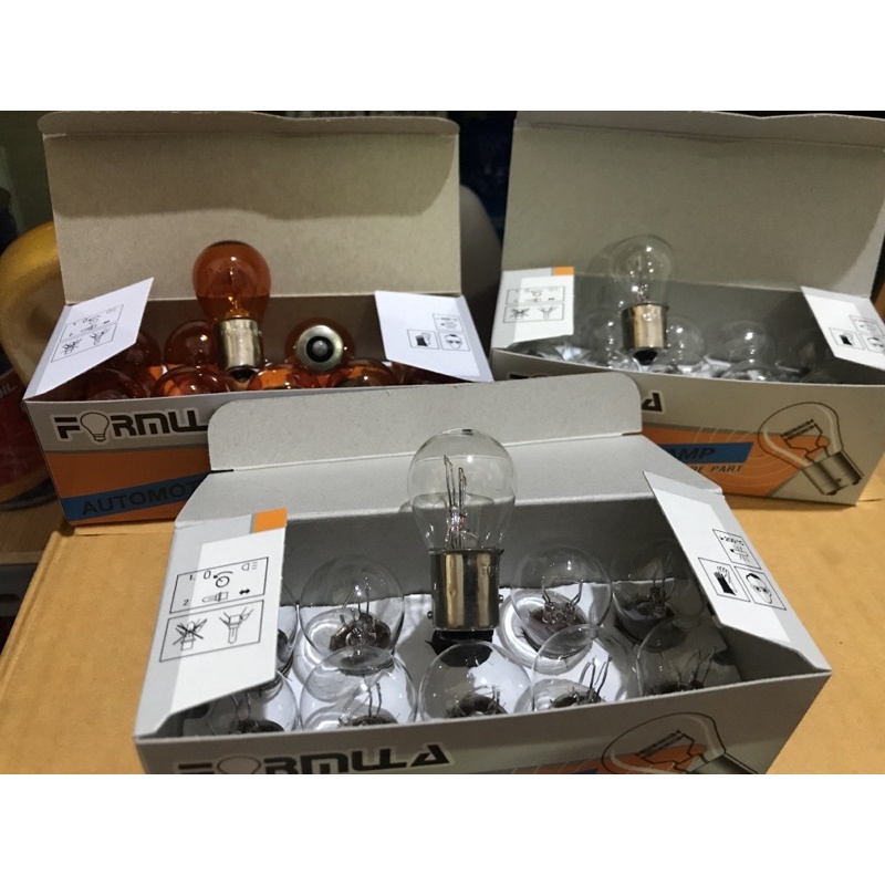 จำหน่ายขั้นต่ำ 2 หลอด* หลอดไฟ รถยนต์ T20 ขั้วเขี้ยว 12V 21/5w (2ไส้) และ 21w 1 ไส้ หลอดใสและหลอดส้ม ยี่ห้อ FORMULA
