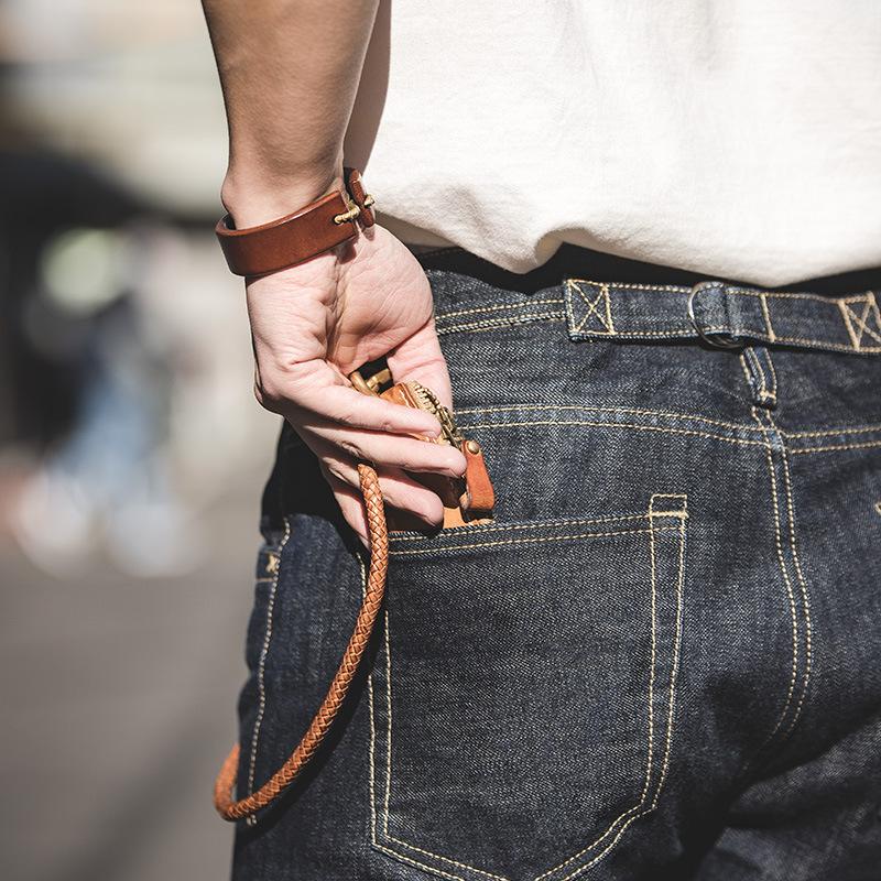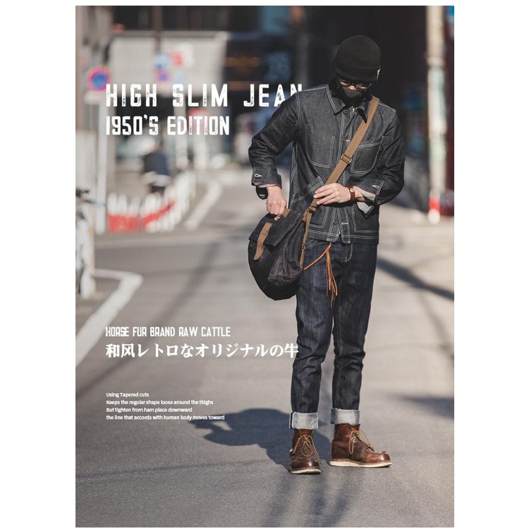 Retro Overalls ผู้ชายชนกลุ่มน้อยหายากญี่ปุ่น Paris หัวเข็มขัดม้าขนสัตว์ Daning หูสีแดงวัวแนวโน้มแฟชั่นกางเกงยีนส์